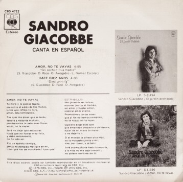 1976年2月,26歲的義大利創作歌手桑德羅.賈科貝(Sandro Giacobbe,1949 - 2025 )推出第三張大碟[Metto allasta.../我正在拍賣…](CBS唱片發行),由Bob Lumbroso製作.