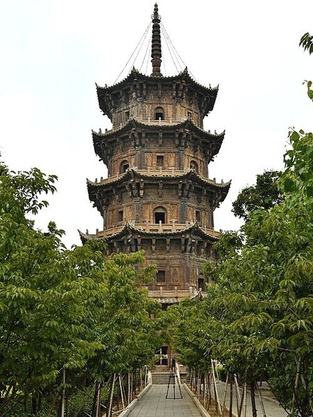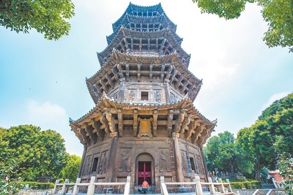 初為五級木塔,南宋寶慶三年(1227)改七級磚塔,今石塔為南宋嘉熙二年(1238年)至淳佑十年(1250)間重建,高48.24米。