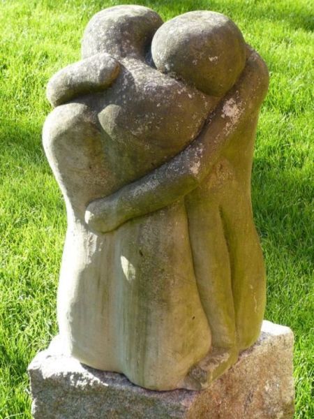把一塊直立石柱稍作雕鑿 約略顯示兩個擁抱接吻的人體