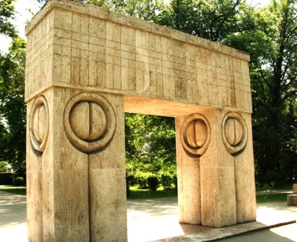 1938年 布朗庫西在羅馬尼亞的科爾古日烏完成戰爭紀念碑創作