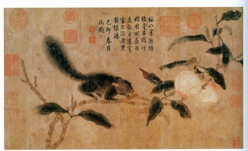 作品有〔桃枝松鼠圖〕〔八花圖卷〕〔秋瓜圖〕〔王羲之觀鵝圖〕等
