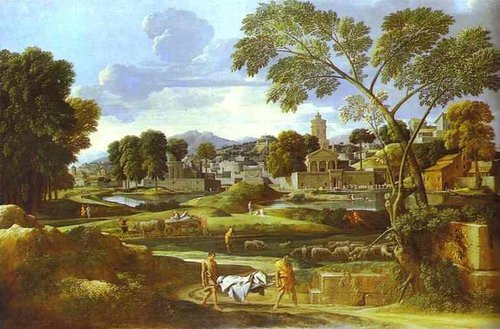 普桑將古代歷史 神話 聖經的主題 以考古學的時代考證互相交會而畫出來
