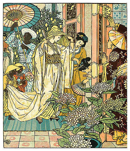 英國插畫大師〔華特.克雷恩〕──融合伊斯蘭,中國與日本異國情調的〔阿拉丁的神燈/Aladdin〕