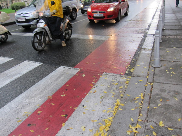 圖-在Zagreb,不止輕軌,還有腳踏車系統,雖然不像哥本哈根那樣驚艷,不過大紅色的自行車道,起碼很起眼。
