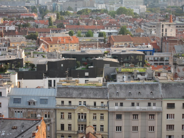 圖-從Lotrscal Tower往下看的Zagreb風景。有綠屋頂喔!
