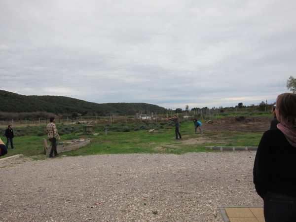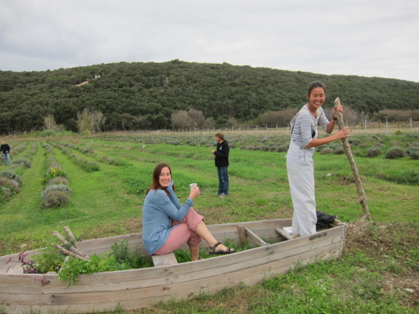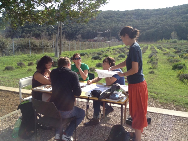 在設計階段,我們全部的人被“關”在薰衣草田中間的小屋子裡,因為鐵門要隨時關起來,以免病人跑走。哈哈,很專心地在做設計,一整天都在討論設計、畫圖、評圖,不亦樂乎。在討論設計時,常常到旁邊的基地走走逛逛,最常互相問對方的問題就是:“Can you see XYZ here?" 例如:你可以在這邊看到一個舞台,從這邊和那邊兩條小路可以繞道這裡?加上早晨的陽光,從這裡撒下來,這邊有類似座椅的擺設,讓大家可以在這邊享受陽光,然後在上面那邊,設個平台,因為那裡是最好觀賞夕陽的地方。簡單、生活是的想像,加上細節的考量與設計是想出兼具實用與美感的設計過程。