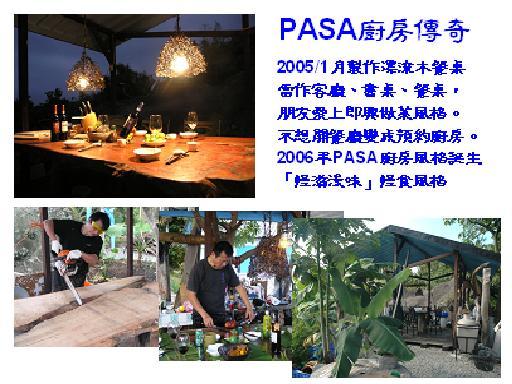 PASA青醬是自創的,融合「台灣野菜」與「在地食材」,不添加任何進口香料,創造出獨特的純自然風味料理。PASA廚房這一年來,除了創造青醬料理,還創造「PASA野菜」,善用台東在地野菜食材。春節前後很多旅人期待PASA教他們作菜,PASA決定推出三天兩夜「PASA青醬與野菜美食之旅」:一天在PASA廚房學習作菜『青醬料理與野菜烹調』(青醬魚青醬羊排食譜教學),另外兩天PASA帶領學員探訪野菜美味,到不同美食餐廳品嚐不同野菜的作法。