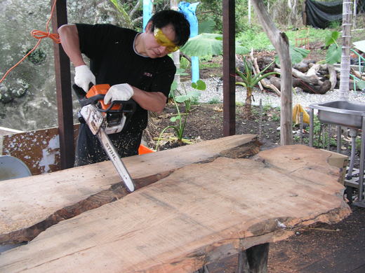緣分盡了,房東不租只好搬家,輾轉遷到第二棟農舍,只好回收第一棟涼亭材料,蓋第二個涼亭,有些材料用在浴室,有些用在廚檯餐桌上。到第三棟農舍時,漂流木使用更多,吧台廚房房間書桌可以用得上都用了。用漂流木製作生活家用器具,由於親手打造琢磨有一種手工的溫馨感。蓋第一棟漂流木涼亭時,都蘭藝術家尚未聚集,漂流木裝置藝術也尚未抬頭,我感興趣的是,如何將漂流木用在生活空間上,「PASA農舍」、「PASA廚房」、「PASA海岸房間」,甚至正在興建中的「PASA COFFEE BAR」,運用更多的巧思讓漂流木的自由曲線融入生活空間。在都蘭住了十一年,漂流木也用了十年,工具技術觀念越來越成熟,在粗獷與細膩之間,尋找自由曲線的美感,從某些角度是環保資源回收再利用,從生活文化來看,添加一些自然紋路的觸感。