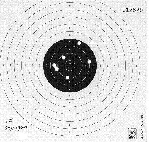 今天一早下著大雨, 十點鐘帶著家中一大兩小與小姨子家的兩小, 來到林口的公西靶場, 我和三個小孩, 盡興的打了一個小時的十公尺空氣槍, 我的成績有進步. 6x4+7+8x3+9x2=73, 平均7.3分.