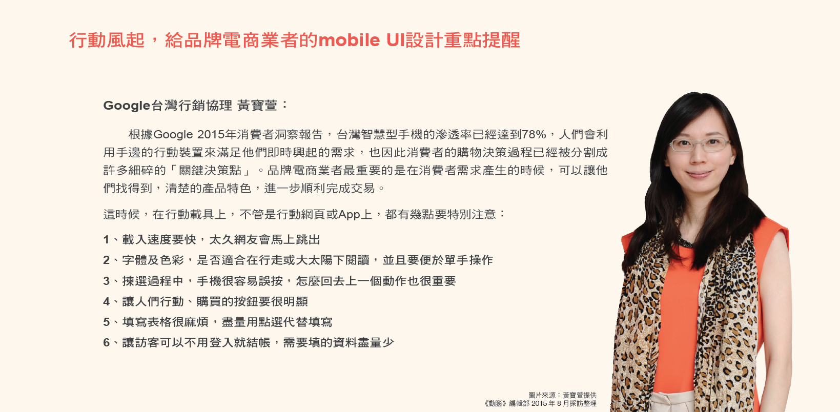 不過,品牌 App 和行動版網頁扮演的角色其實大不相同,行動網頁的任務是讓潛在顧客很快找到、了解產品,並且快速下單;App 商城則是品牌和顧客長期的承諾,用來經營忠實顧客。現階段,當許多品牌電商開始跨足實體店面的時候,更可以扮演導客入店的角色。(更多精采案例請看P.76「行動崛起 品牌電商如何掌握商機?」) .png)