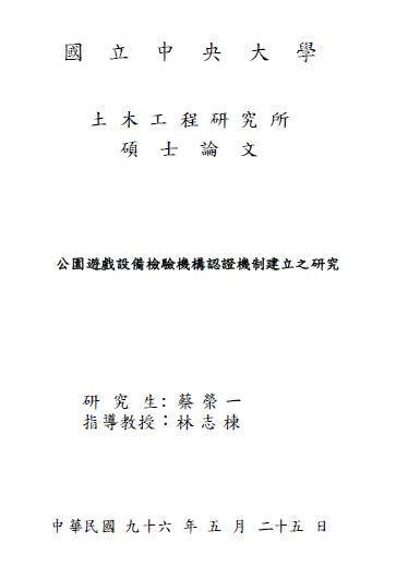 【碩論】公園遊戲設備檢驗機構認證機制建立之研究(蔡榮一)2007年7月