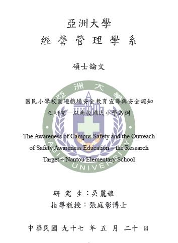 論文名稱:國民小學校園遊戲場安全教育宣導與安全認知之研究-以南投國民小學為例