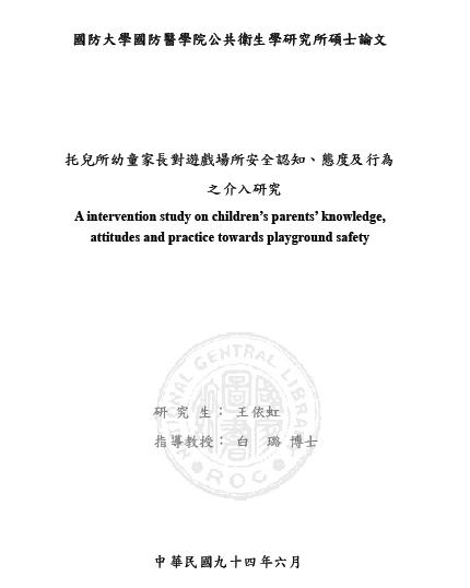 論文名稱:托兒所幼童家長對遊戲場所安全認知、態度及行為之介入研究