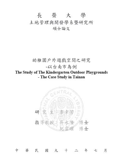 論文名稱:幼稚園戶外遊戲空間之研究-以台南市為例