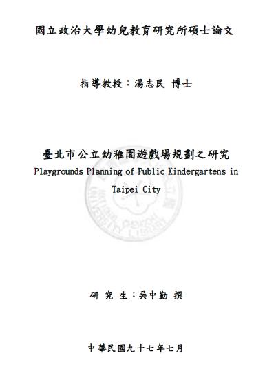 論文名稱:臺北市公立幼稚園遊戲場規劃之研究