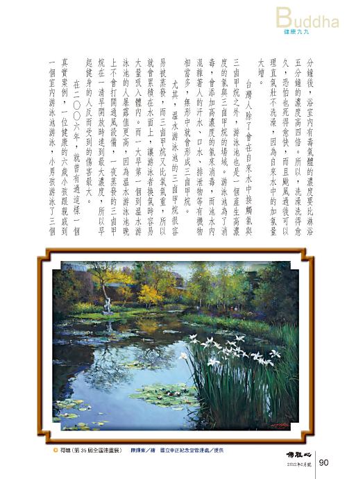 另一個真實案例更令人遺憾,台北某建築公司的副總搬到內湖新辦公室之後,每天七點到公司,先去健身室三十分鐘,然後到溫水游泳池游泳四十五分鐘。這位副總裁的體格一流,不抽菸、不喝酒,上班時神采奕奕,也從不下廚,不吃中藥,可是不到一年時間就因為肺癌過世了。為什麼?因為他都是第一個到溫水游泳池報到,一整晚飄浮在水面上的三鹵甲烷就這樣被吸進到他身體裡。