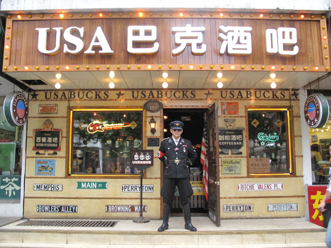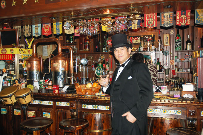 抬眼望去,酒吧的牆上、木梁上,到處都貼著酒標和三四十年代的畫報,讓人恍惚間以為穿越時空,走錯了年代。而那些難得一見的早期的留聲機、收音機、皮箱、工藝品則讓人在感歎之餘,不僅佩服起酒吧的主人來,這些稀有的收藏品不是只用金錢就能得到的,還要有品味和獨到的眼光。啤酒桶改制的吧桌、高腳凳、方格棉質臺布,與酒吧裡的飾物相映成趣,顯示出酒吧主人的獨具匠心。掛在門口的老式脈衝電話突然響了起來,清脆的鈴聲穿越時空,把我已飄遠的思緒拉了回來。