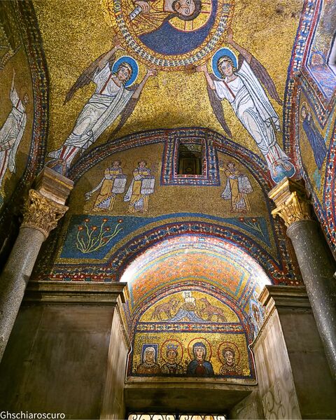 在羅馬,要看到正宗的拜占庭風格馬賽克裝飾,非聖巴西德大殿的聖芝諾禮拜堂莫屬。這是羅馬唯一一座內部覆滿馬賽克裝飾的禮拜堂,以其金碧輝煌的外觀而被譽為「天堂的花園」。
