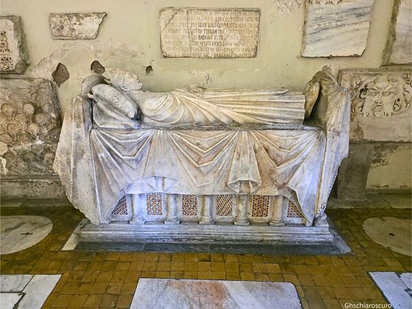 ▼禮拜堂放置一座石棺,主人是本教堂13世紀時的一位領銜樞機。石棺的製作風格屬於著名的Arnolfo di Cambio。