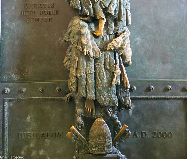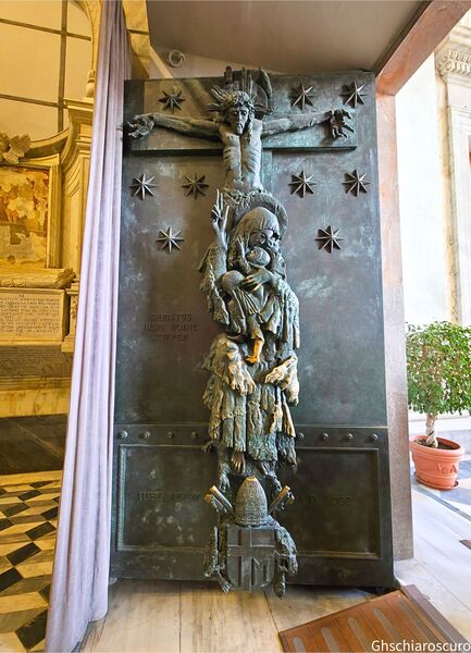 現在這扇聖門是現代義大利雕塑家Floriano Bodinin所創作,於西元二千年禧年由教宗若望保祿二世揭幕。
