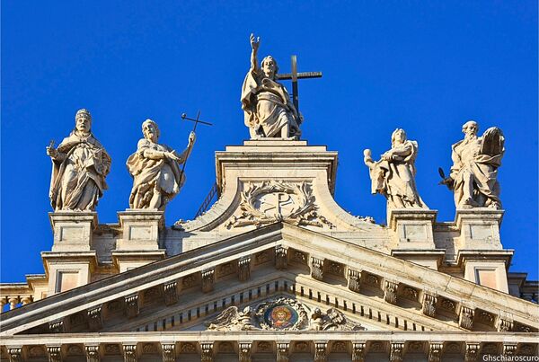 拉特朗聖若望大殿門面最顯眼位置的銘文是救世主的名字: CHRISTO SALVATORI,而非建築委託人的名字,在這裡克萊孟十二世修正了保祿五世所犯的錯誤。