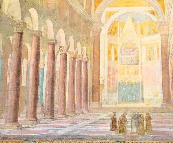 ▼這幅古代的壁畫紀錄了洛米尼改建前中殿的原貌