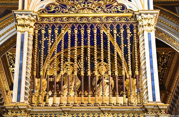 聖若望大殿祭壇華蓋後方的唱詩班席開放讓遊客進入,因此可以360度的近距離欣賞這這座華麗的祭壇華蓋。