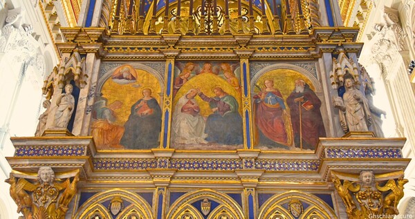 ▼面對後殿的三幅壁畫為聖母加冕,聖母報喜等主題。
