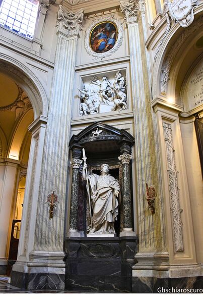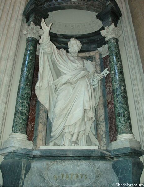 波洛米尼設計的壁龕空了六十多年,直到十八世紀初教宗克萊孟十一世(Clement XI, 1700-1721在位)才發起雕像製作的計畫。