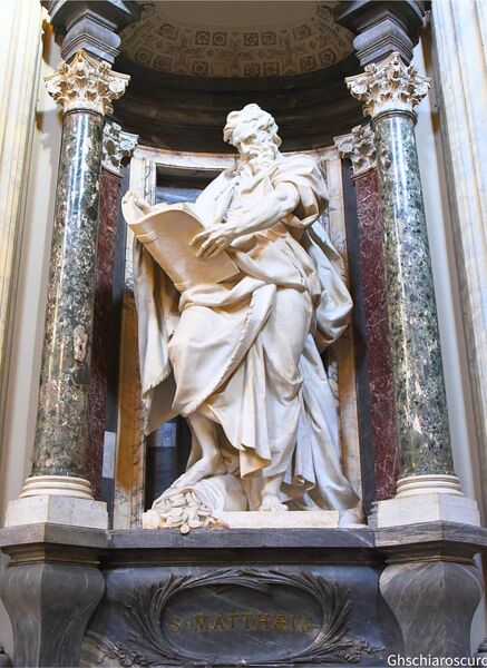 十八世紀初,貝尼尼與波洛米尼都已不在人世。教宗克萊孟十一世展開了聖若望大殿的雕像製作計畫。這是當時藝術界的大事,能被教宗指派製作雕像的都是當時頂尖的雕刻家。十二尊雕像分別由七位雕刻家製作。為了統一雕像的風格,由當時羅馬頂級畫家Carlo Maratta設計雕像的造型,再由這些雕刻家按照設計圖製作雕像。