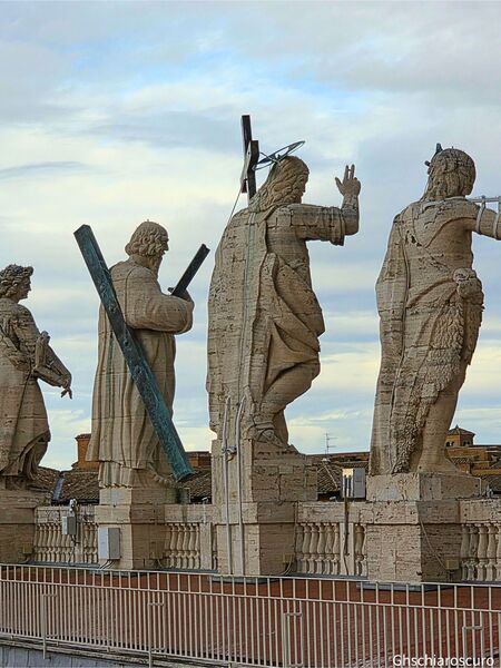 拉特朗聖若望大殿立面高度約為45公尺,與梵諦岡聖伯多祿大殿立面高度差不多。從地面觀看如此高的雕像,其實也看不清楚,因此對雕刻技巧的要求不會太高,甚至有些雕像的背部被省略而不雕刻。從實務面與經濟層面考量,教堂屋頂的雕像大多由次級的雕刻師所製作。