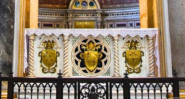 ▼祭壇前方的地窖是教宗瑪爾定五世 (Martin V, 1417-1431在位)的墓。