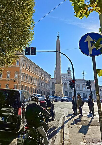 抵達Via Merulana的終點就看到拉特朗大殿的方尖碑,這是指引古代朝聖客來此的地標。在地鐵開通前,這裡是朝聖者從羅馬市中心抵達聖若望大殿的入口。