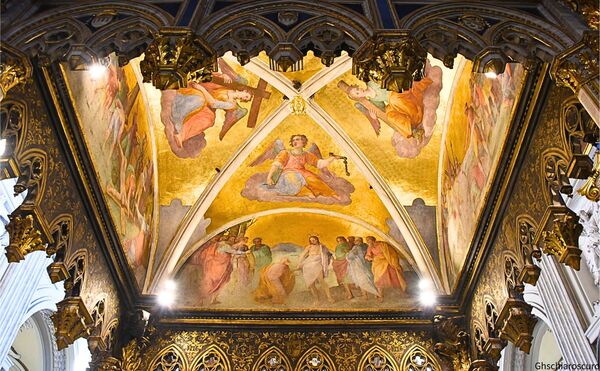 ▼華蓋第二層內部十字拱頂上也有繪畫