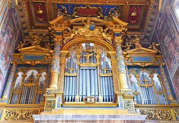 ▼這座管風琴大有來頭,是羅馬最古老的管風琴,製作於1601年。管風琴的外殼也是della Porta設計的,難怪第一眼看到會以為這是教堂的建築裝飾。著名的巴洛克作曲大師韓德爾(Handel)在1707年曾慕名而來,親自彈奏這座管風琴。
