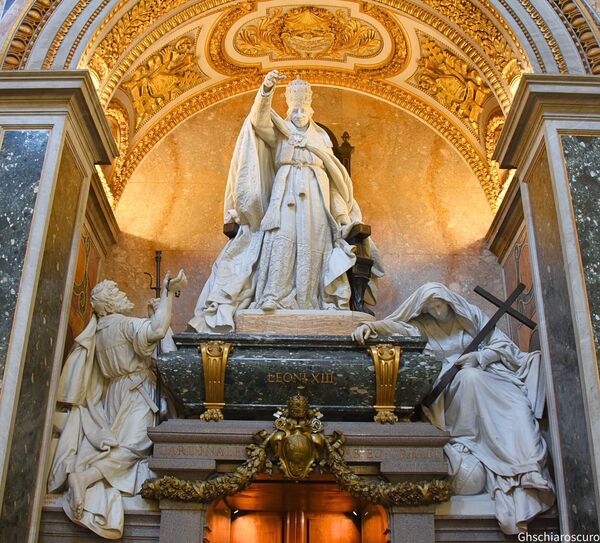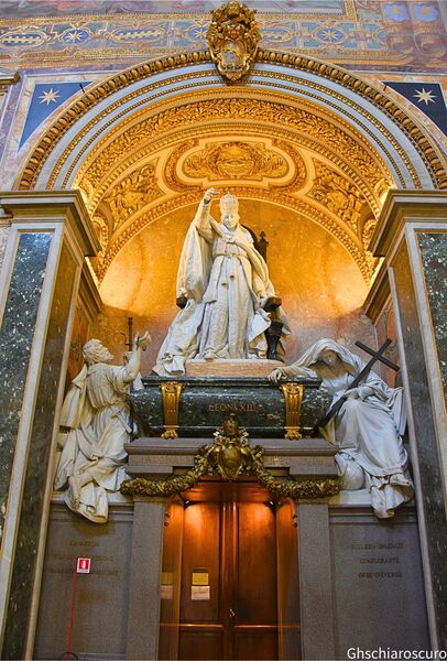 ▼袖廊左側牆上的教宗良十三世(Leo XIII, 1878-1903在位)紀念碑及陵墓