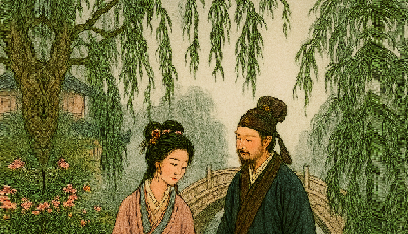秦淮河流經南京城,稱「十里秦淮」,春天柳絲搖曳,景色如畫,茶樓酒肆是文人雅士們聚會、尋歡作樂的地方。