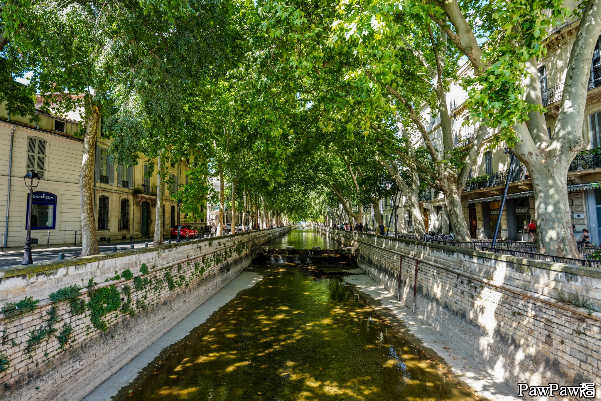 在泥姆的老城區有這麼一條林蔭水道。許多城市不乏林蔭大道,但這卻是在一條人工渠道,而沿著這人工河的兩邊則是種著樹的行人道,行人道之外才是行車的馬路。