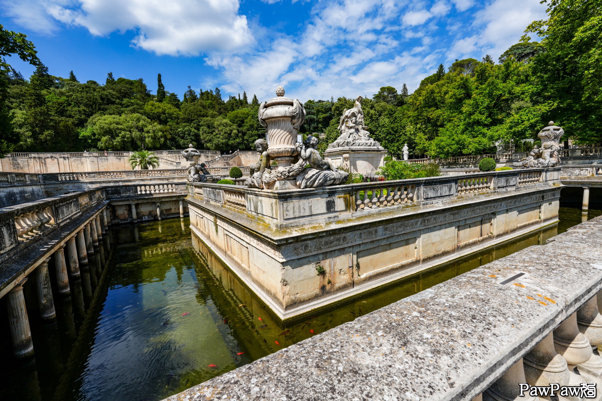 這個公園很大,除了用以為名的泉水池塘之外,還包括了羅馬帝國時代的神廟及山坡上同為羅馬時代的瞭望塔。話說回來從這泉水池塘的構造可看出來18世紀時的法國對於實用及美觀兼備的設計。