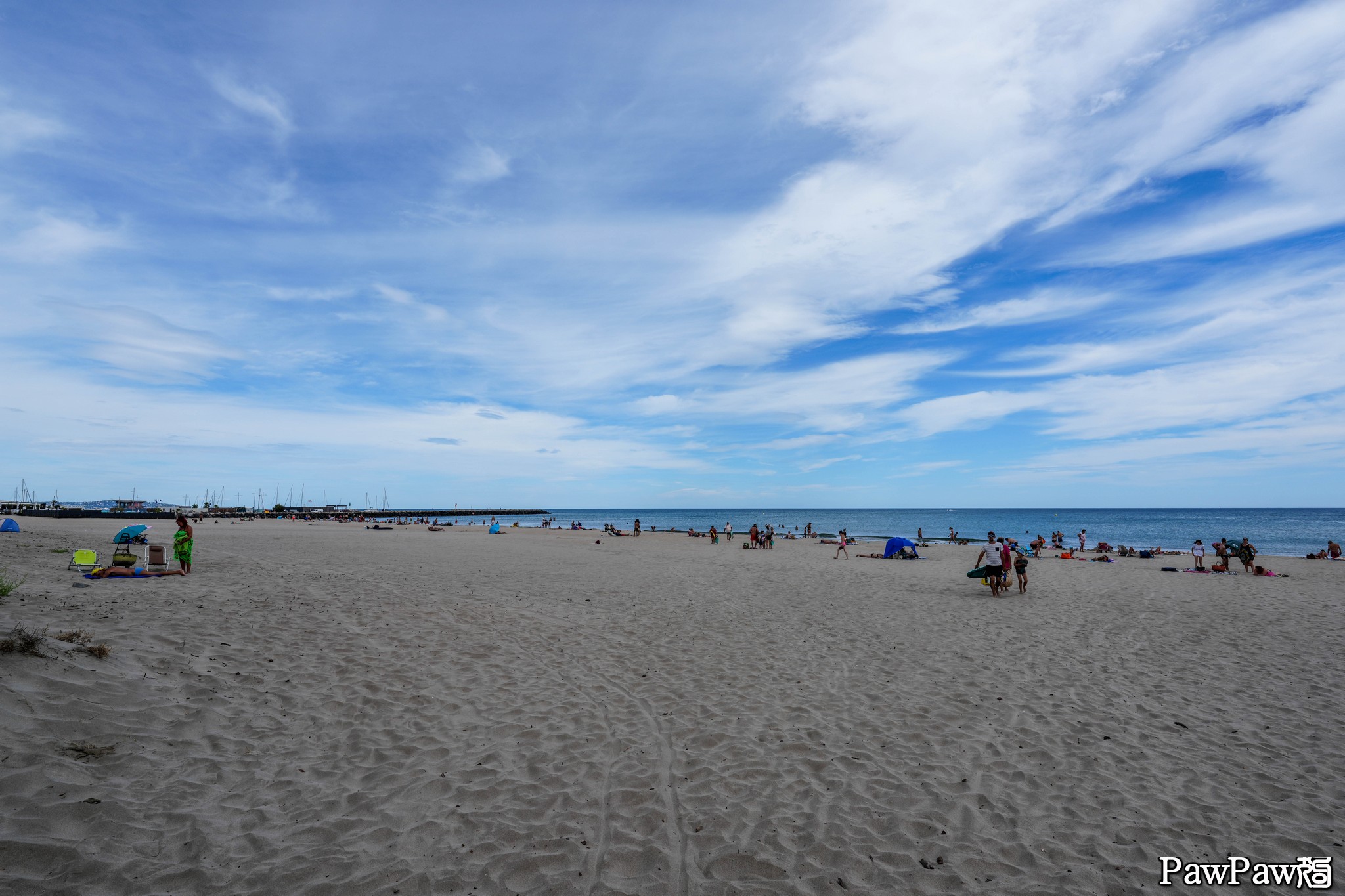 話說因為貓狗在尼姆比原來的設想打算多待了一天,於是本來想去的蒙佩利爾就只好放棄了,但還是想看看法國西南的海岸的風光是否與東南海岸一樣的壯觀,於是沿著海岸公路隨便找了地圖上一個標註為榮譽海灘之處。結果進入這海灘的小鎮時,進出的車輛很多,馬路上也到處是守規矩及不守規矩胡亂過馬路的遊客。好不容易找到一個停車位,走到海灘結果是大失所望。雖說是個不小的海灘,但實在沒啥景觀可言。