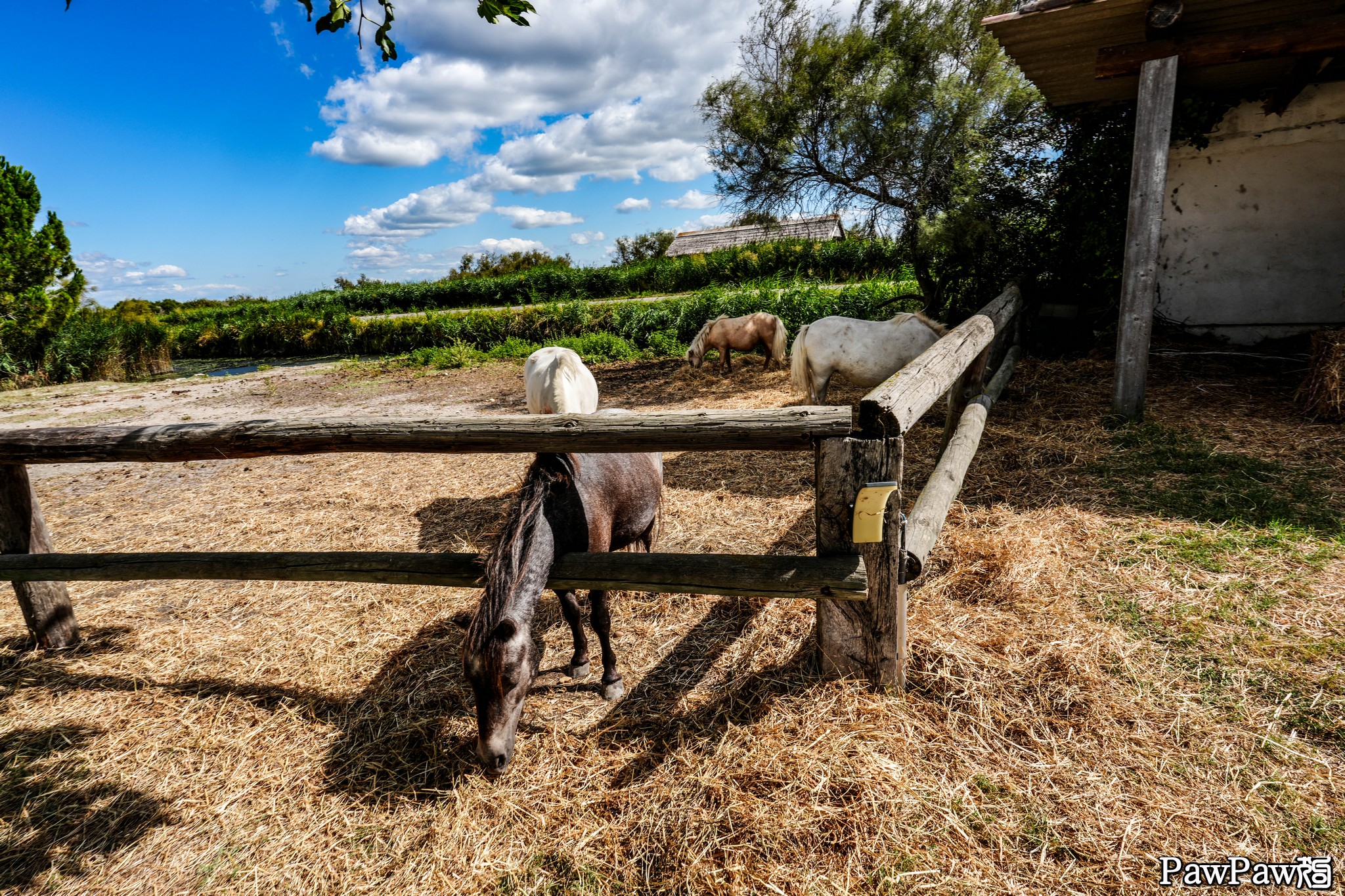 結果呢,確實這旅館是個莊園,而且也不乏停車位,甚至在大門口還有個小養馬場裡面養著幾匹吸引遊客的道具馬。問題是這所謂的四星旅館與許多法國的旅館一樣是過度誇張,要以大狗來說,最多只能說是三星,甚至說是二星也不為過。更糟的是因為是禮拜天,旅館的餐廳不開,要用晚餐只能去好幾公里外的濱海聖瑪麗。
