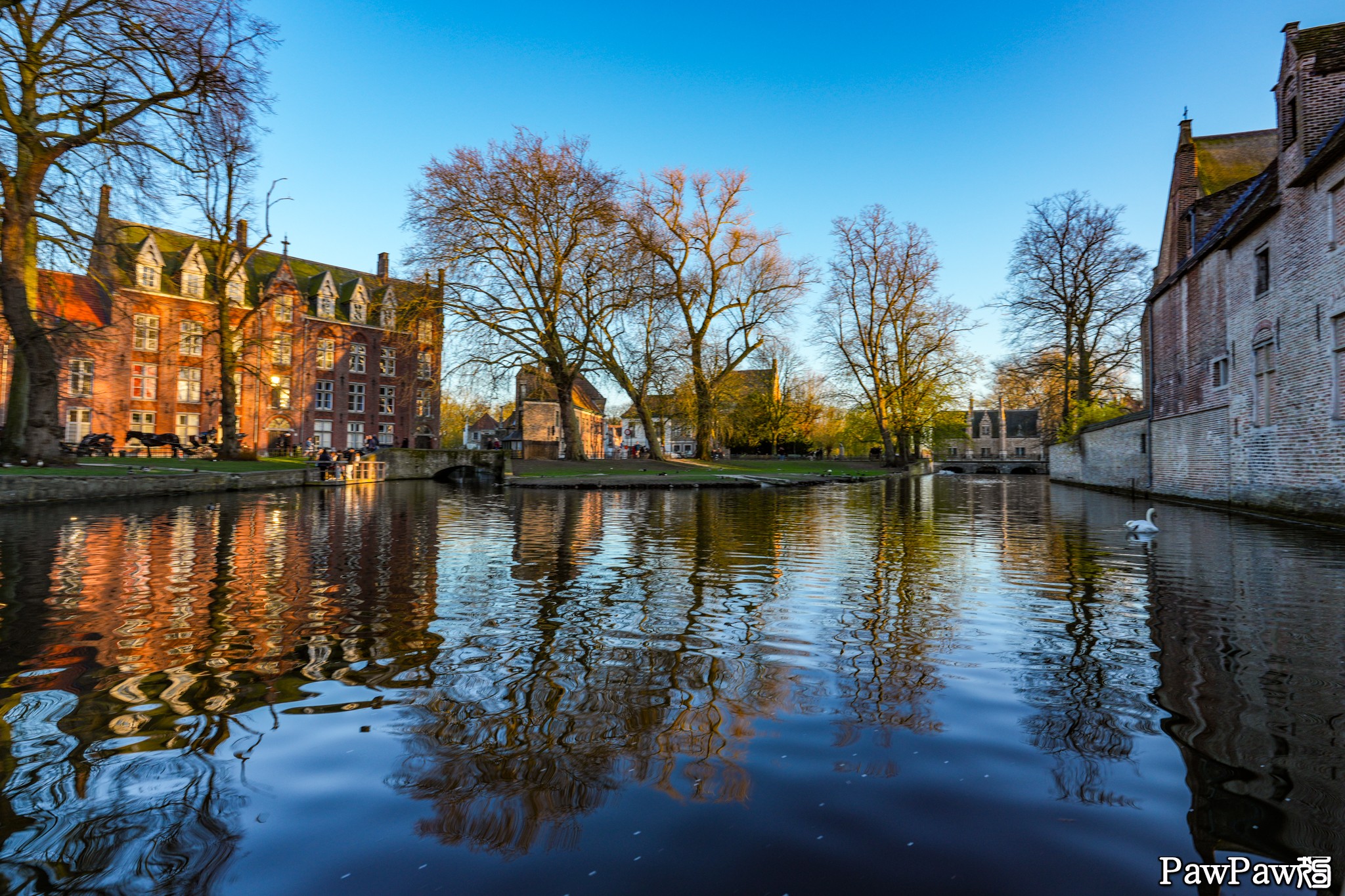 雖說荷蘭的阿姆斯特丹以錯綜交叉的運河水系問名,其實從荷蘭到比利時不少在海岸附近但不一定是沿海的城市都有相當的最終入海的運河水系。就如這比利時的布魯日來說雖然離海岸還有點距離,但城內仍有相當規模的運河水系,現今怕是賺遊客銀子的觀光船遠比貨船要多的多。貓狗原本只是打算走過路過布魯日奔向法國的敦克爾克,結果在這布魯日被截胡,不僅搭了觀光小巴,馬車,還趕在日落前搭了運河最後一班遊船,貢獻了不少銀子給這城的觀光業。歐洲不少城市若沒了觀光客怕是要活不下去了。