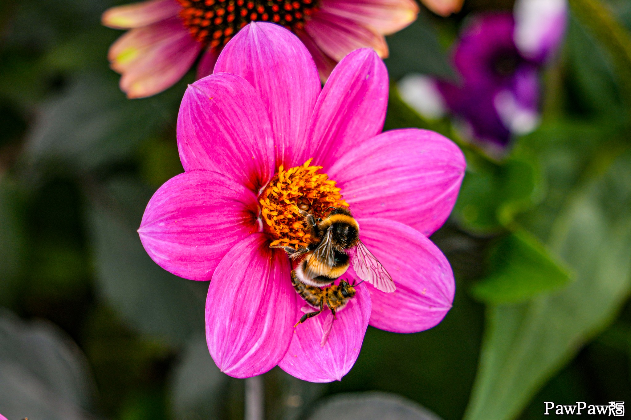 路邊的小花,看的出有兩隻蜂嗎?