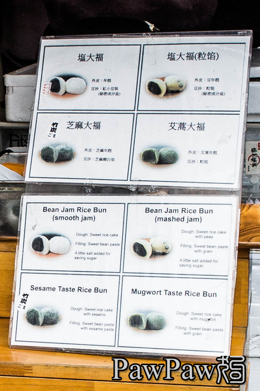 這裡也不儘都是海鮮。像這攤子不但賣的是麻糬,甚至還有英文說明。