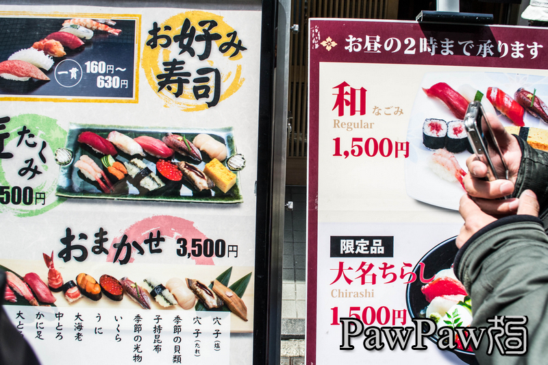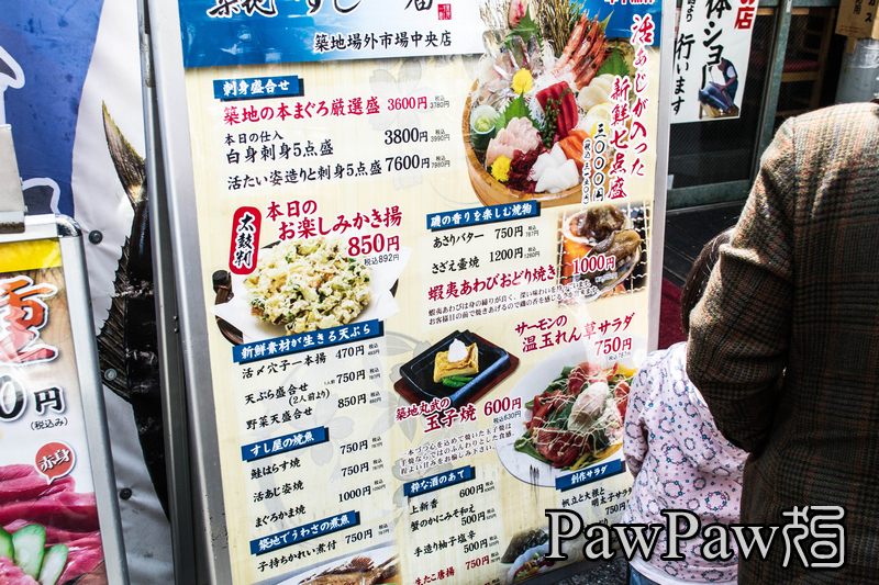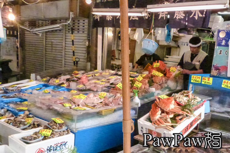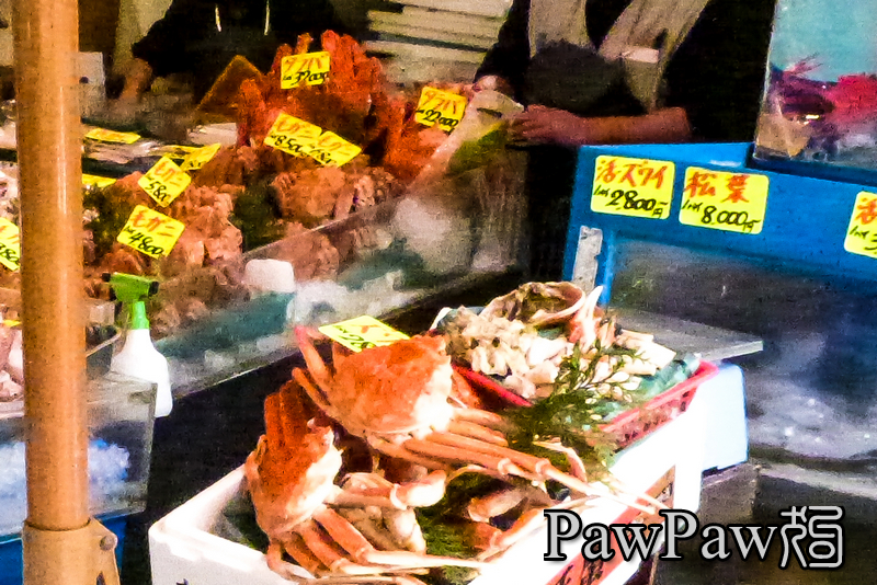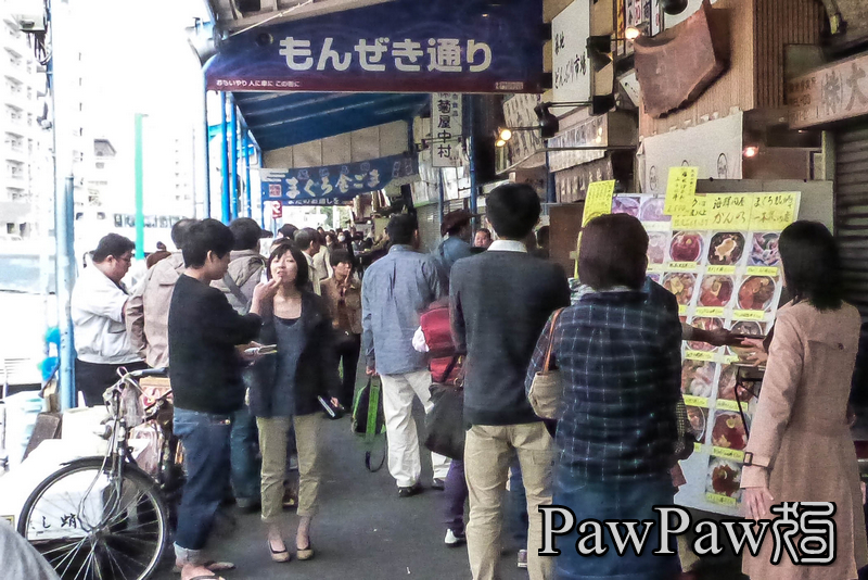 這裡不管是餐館還是賣生海產的,也不論是大的店面還是小攤位,有個共同的特色就是價格都是遊客價,絕不便宜。照說同樣是築地市場賣出的海鮮,不論在這還是在遠處的具酒屋都是一樣的但這裡的價錢就要貴了許多。可是遊客心理就還非得在這吃不可。哪怕貴而不好吃也得吹牛否則花錢作冤大頭豈不給人笑話?
