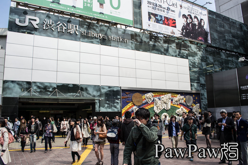 從車站的玻璃窗往外看就是常在日本電影及連續劇裡出現的涉谷站前廣場及十字路口。而出了站這涉谷站也常在鏡頭內。至於來來往往的人群更是重點。