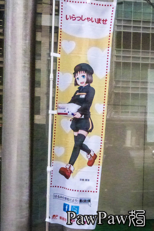 離開築地市場後接著大貓要去上次同樣沒時間去的涉谷看看那號稱最繁忙的行人穿越十字路口到底如何。在去車站的路上經過一個郵局,門口插這麼個旗幟。顯然漫畫文化在日本已深入如此。