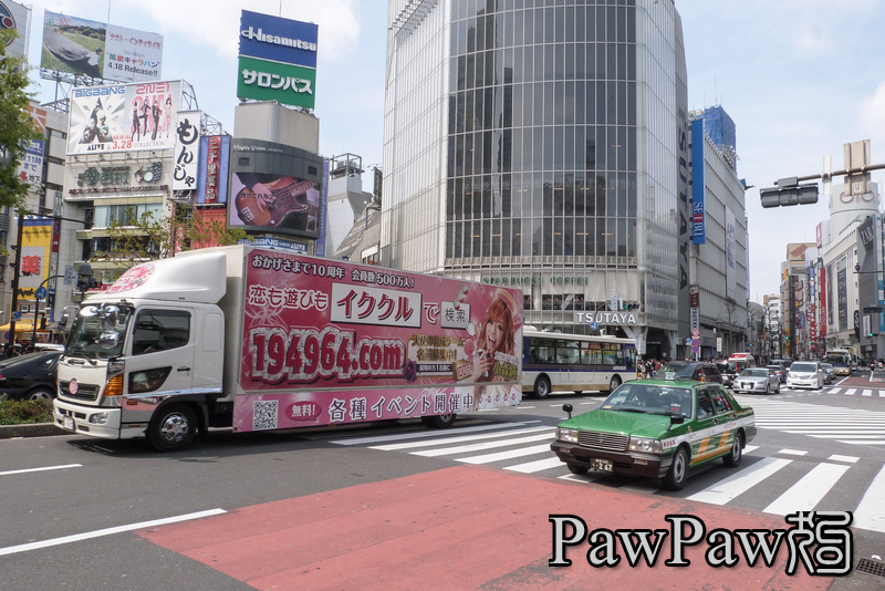 涉谷這十字路口人多車卻不多。隨便在路口站一會到是看到幾輛這種廣告車經過。
