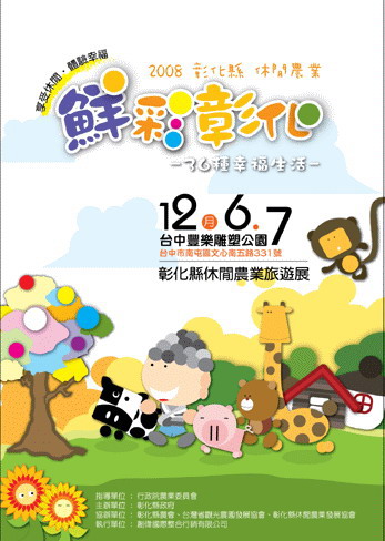 「鮮彩彰化 36種幸福生活」,12月6、7日在台中市豐樂雕塑公園舉行「2008彰化縣休閒農業旅遊展」