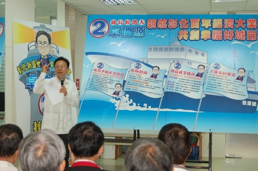伯源特別要向各位鄉親報告,根據行政院主計處公布的失業率數據,97年12月全國失業率為5.03%,而彰化縣97年下半年平均失業率為4.3%,居全國第二低,98年上半年本縣為5.7%,在全國百萬以上人口縣市(包括台北市、台北縣、桃園縣、台中縣、彰化縣、台南縣、高雄市、高雄縣)中失業率最低。